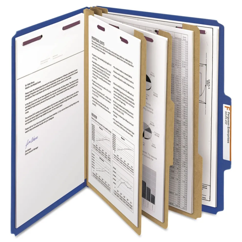 Smead 14096 8 SafeSHIELD Fasteners 3 Dividers Letter Size Eight-Section Pressboard Top Tab Classification Folders – Dark Blue (10/Box)