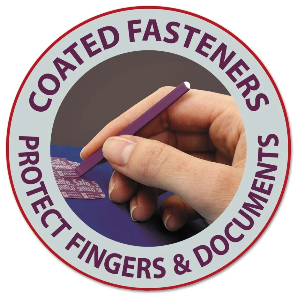 Partition folders with patented SafeSHIELD coated fasteners help prevent finger cuts, eliminate paper tears and reduce excessive fastener crinkling