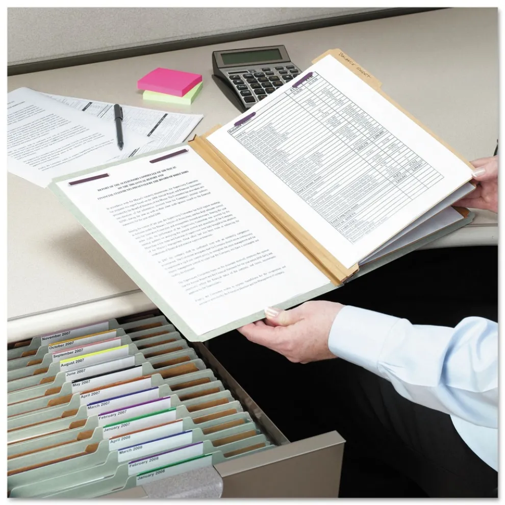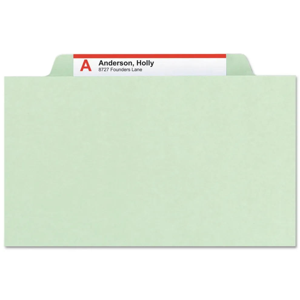 Minimize the time you spend searching for documents and increase the efficiency of your filing system. Smead’s Pressboard Classification File Folders with SafeSHIELD Fasteners make it easy to organize your critical information by providing a number of different filing surfaces that can be used to separate your documents in subcategories and keep them in proper sequence. Purposefully designed to provide a solution for the most common fastener issues, our Pressboard Classification File Folders feature SafeSHIELD Coated Fasteners that help you avoid hand injuries, ripped papers and excessive fastener crinkling. The 2 in. expanding spine made of tear resistant material offers greater storage capacity for bulky projects. Compatible with our Viewables Multipurpose Labels (sold separately).