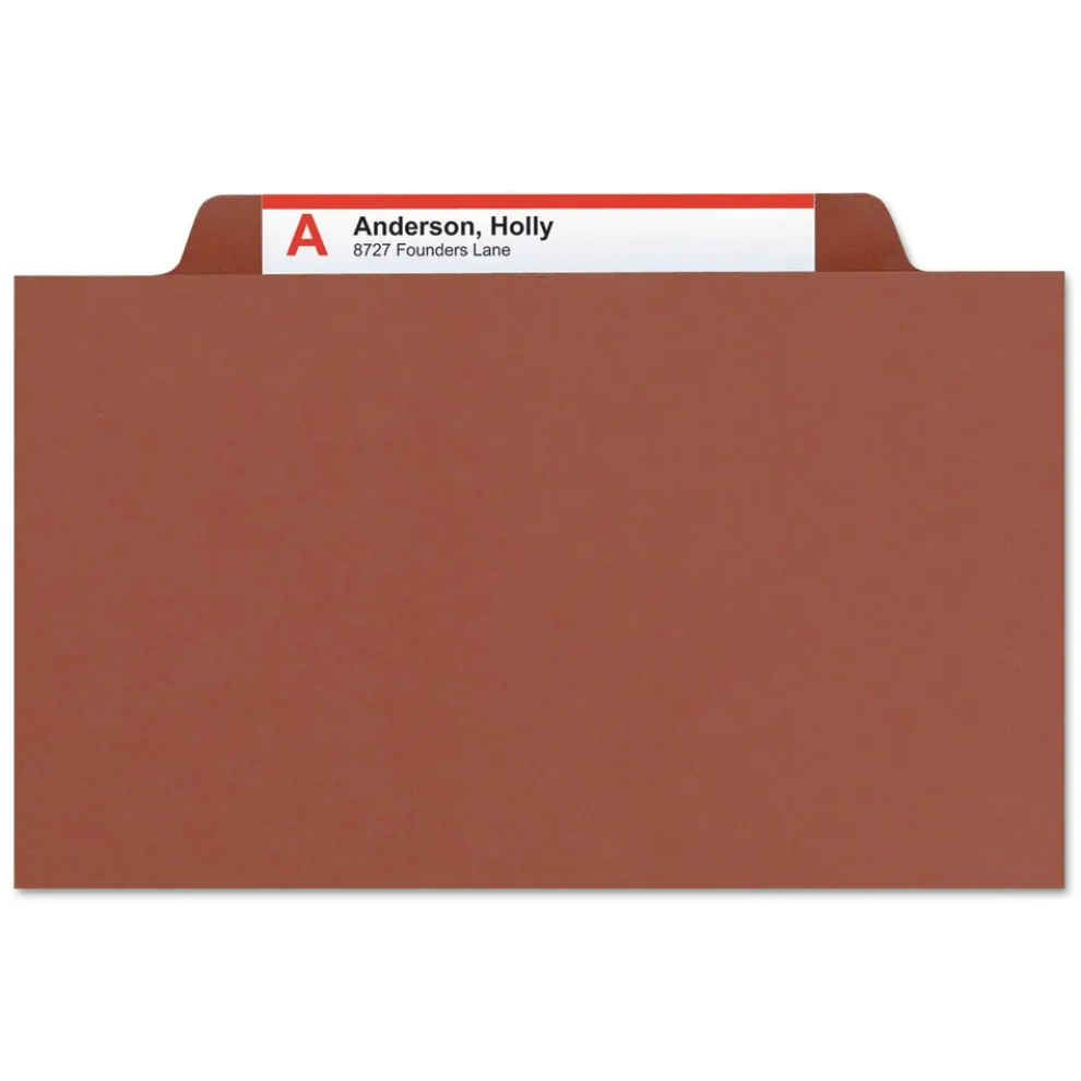 Minimize the time you spend searching for documents and increase the efficiency of your filing system. Smead’s Pressboard Classification File Folders with SafeSHIELD Fasteners make it easy to organize your critical information by providing a number of different filing surfaces that can be used to separate your documents in subcategories and keep them in proper sequence. Purposefully designed to provide a solution for the most common fastener issues, our Pressboard Classification File Folders feature SafeSHIELD Coated Fasteners that help you avoid hand injuries, ripped papers and excessive fastener crinkling. The 2 in. expanding spine made of tear resistant material offers greater storage capacity for bulky projects. Compatible with our Viewables Multipurpose Labels (sold separately).