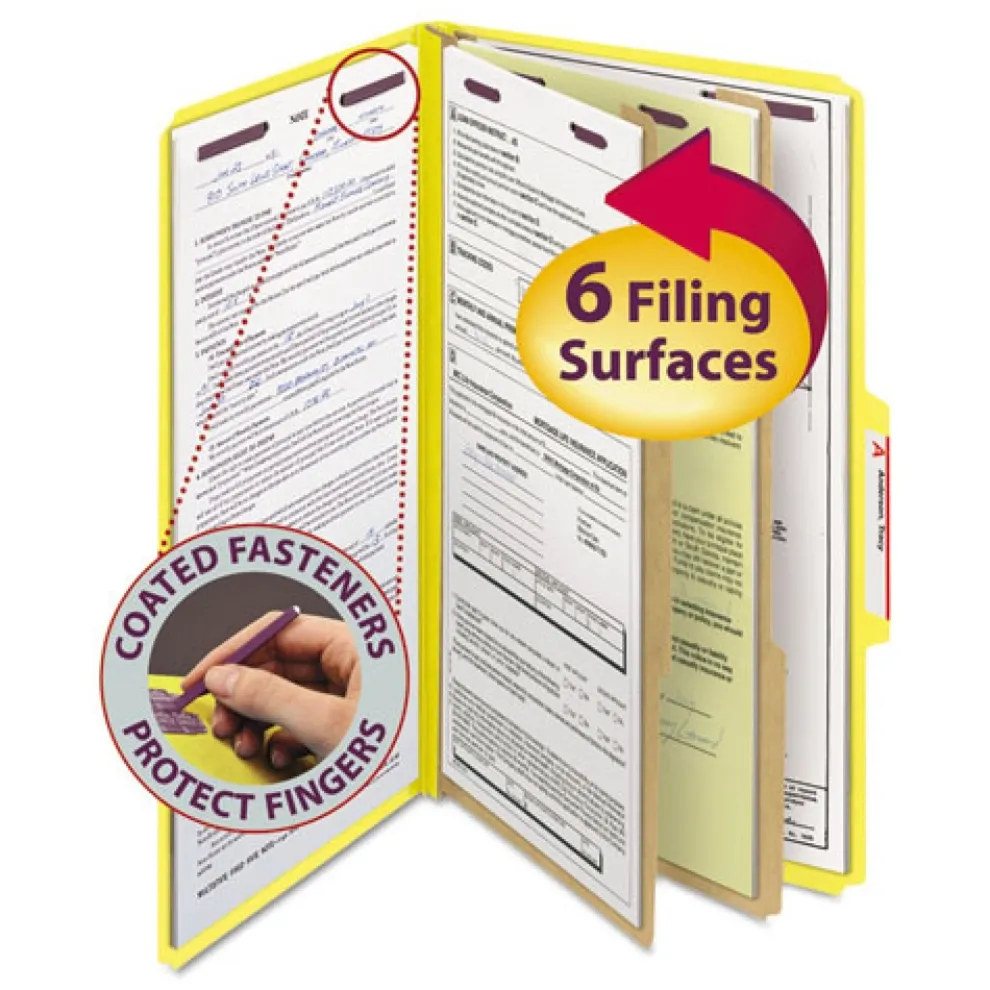 Smead 19034 Pressboard Six-Section Top Tab Classification Folders – Legal, Yellow (10/Box)