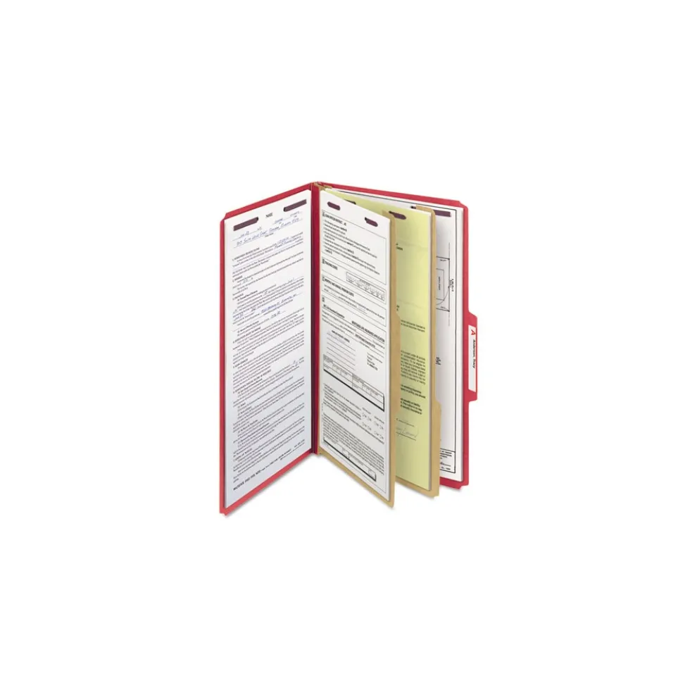 Smead 19031 Six SafeSHIELD Fasteners 2 Dividers Legal Size Six-Section Pressboard Top Tab Classification Folders – Bright Red (10/Box)
