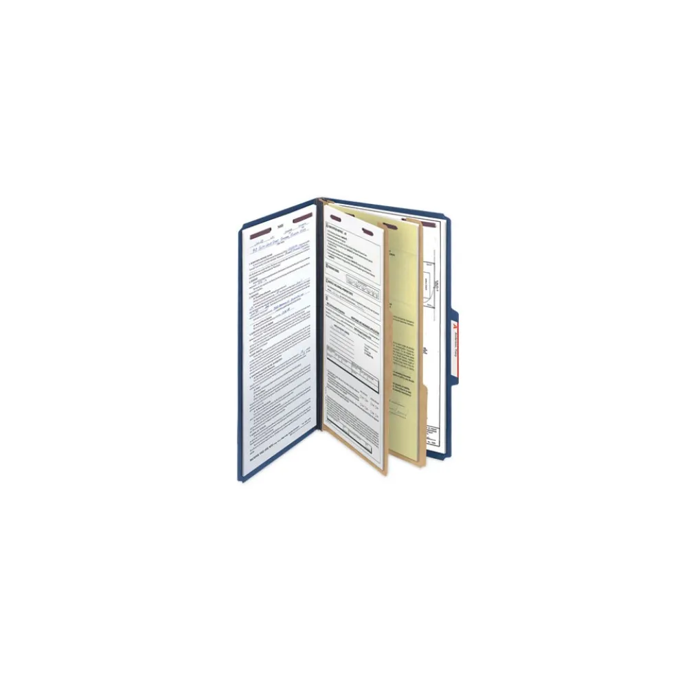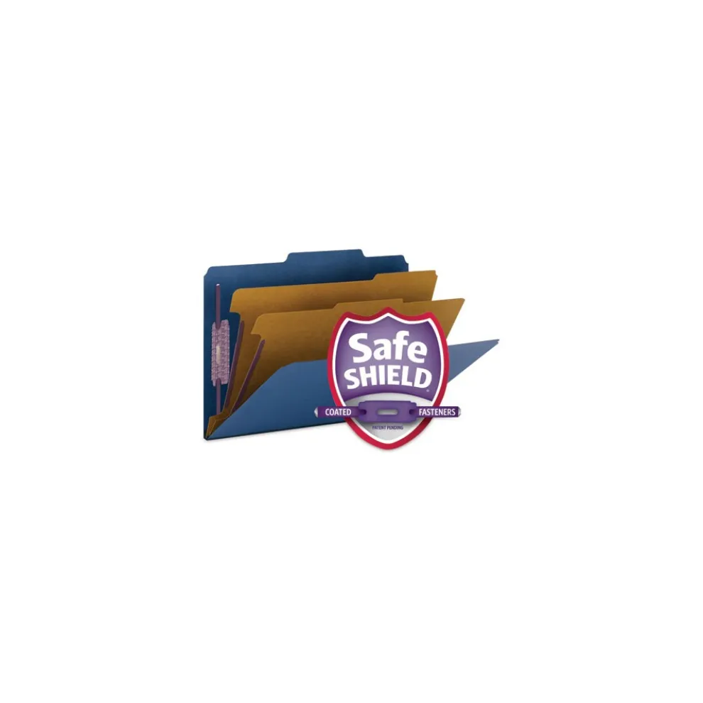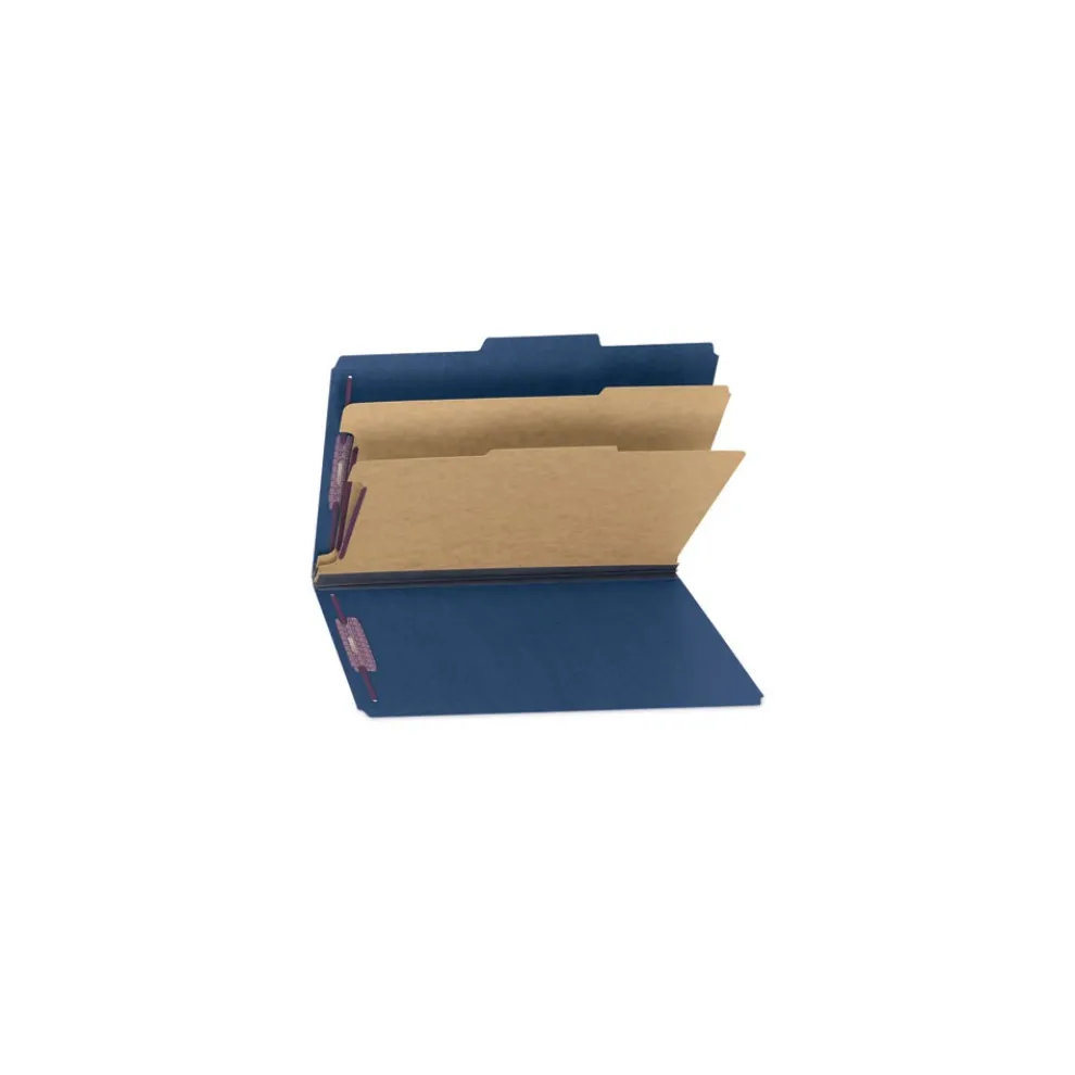 Smead 19035 Six SafeSHIELD Fasteners 2 Dividers Legal Size Six-Section Pressboard Top Tab Classification Folders – Dark Blue (10/Box)