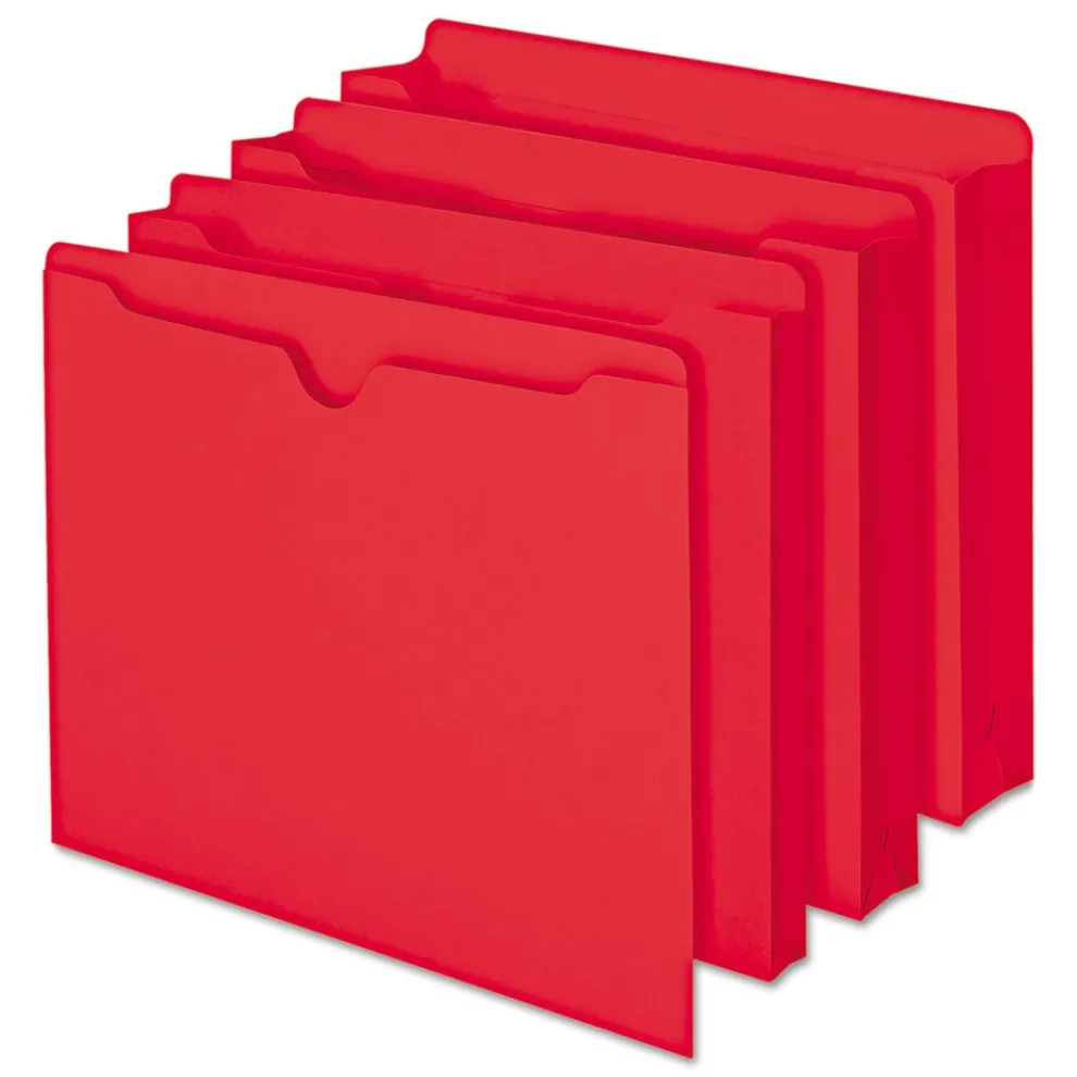 Smead 75509 Straight Tab Colored File Jackets with Reinforced Double-Ply Tab – Letter, Red (100/Box)