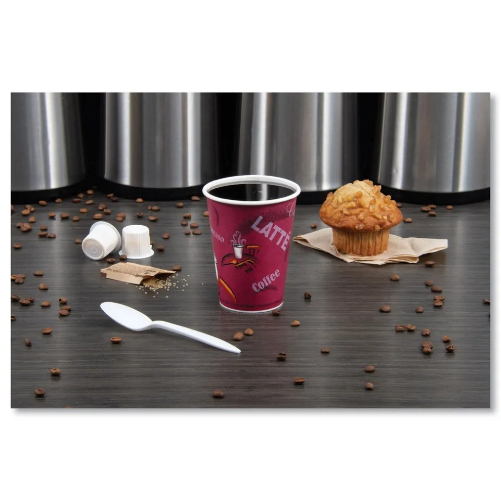 (1000/Carton) 12 oz. Paper Bistro Design Hot Drink Cups – Maroon – 412SIN