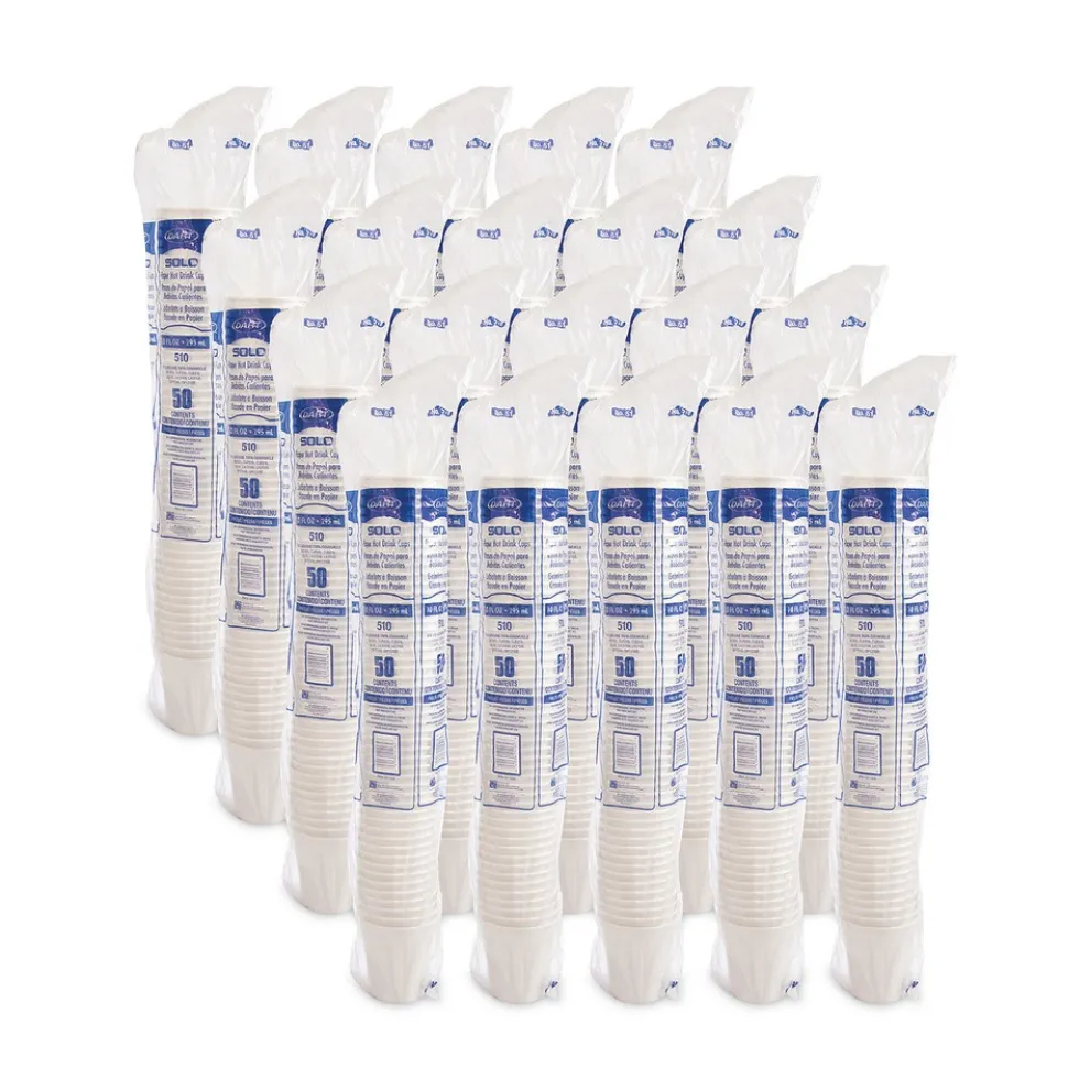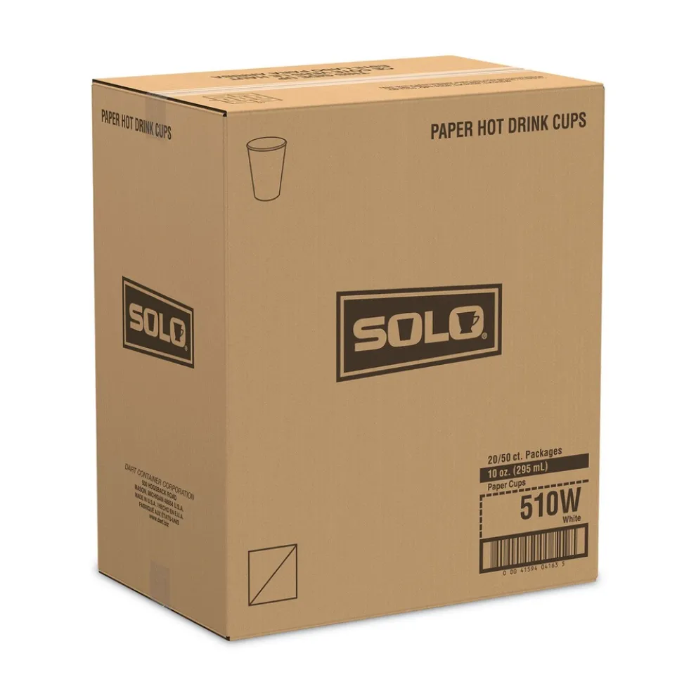 SOLO 510W 1-Sided Poly 10 oz. Paper Hot Cups – White (1000/Carton)