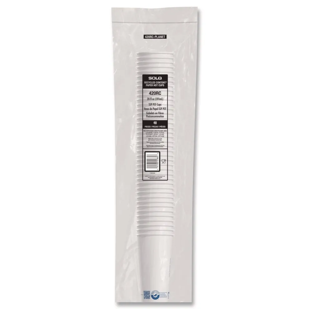 SOLO 420RC-PLANET Recycled Content PCF Paper Hot Cups ProPlanet Seal 20 oz White/Blue 600/Carton