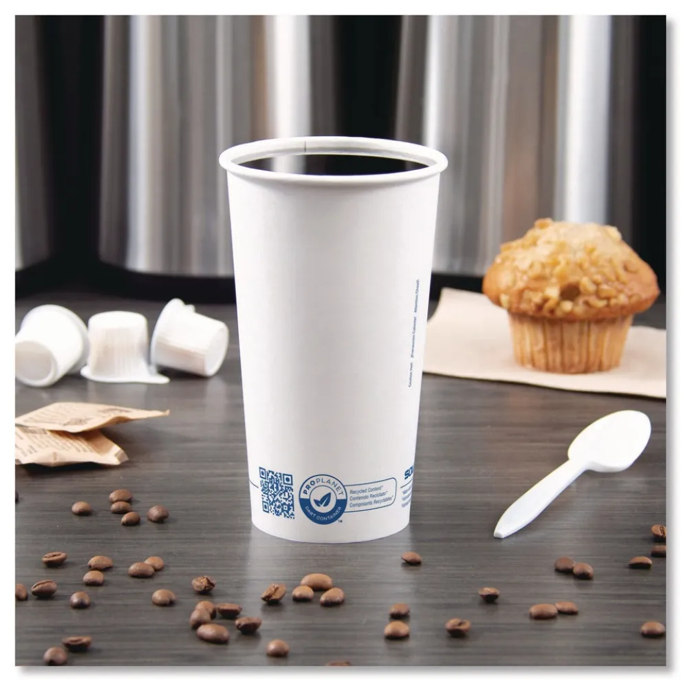 Serve hot drinks the sustainable and secure way. These cups are designed with a moisture barrier that helps prevent leaks. Enjoy or serve coffee, cappuccino, tea or hot chocolate with confidence. Whether you’re in the foodservice industry, managing an office or planning an event, SOLO Recycled Content Paper Hot Cups offer a reliable option you can be proud of. Provide an interactive customer experience and display your sustainability commitment with a scannable QR code printed on the cup. Compatible snap-tight lids are sold separately.