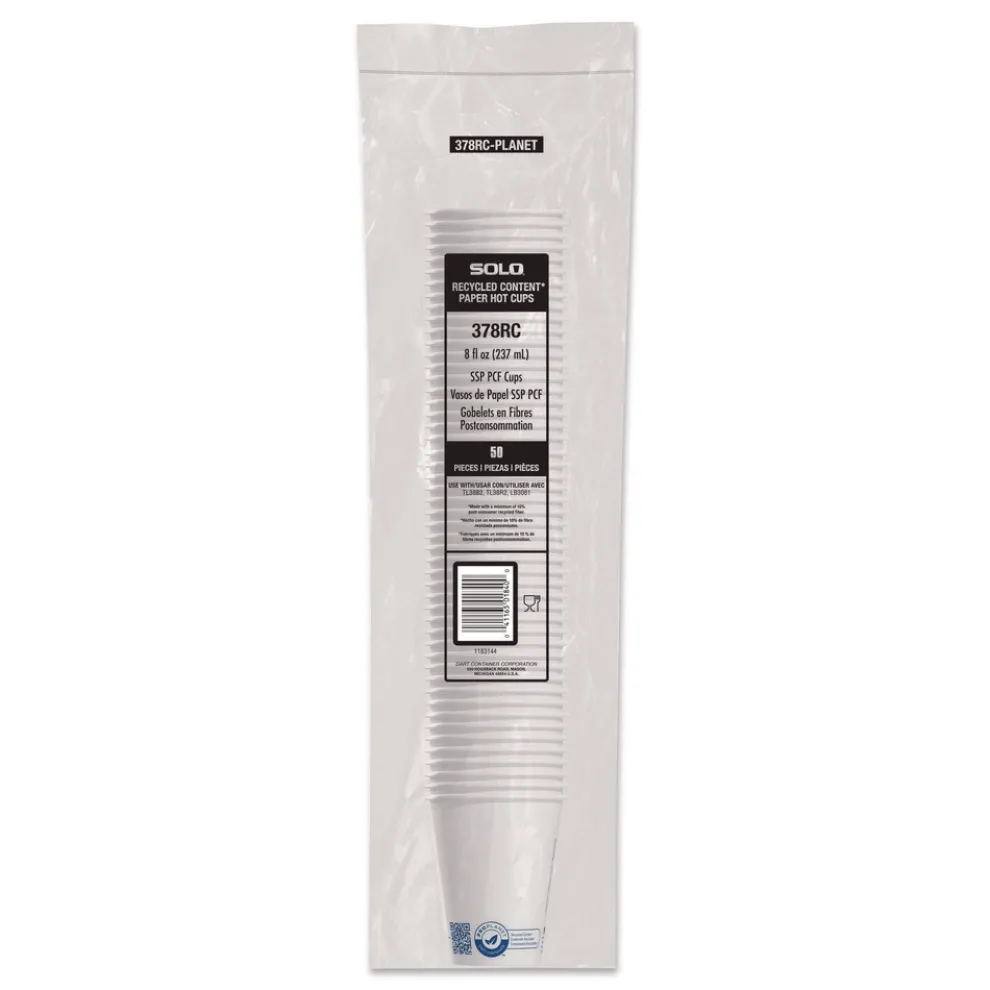 SOLO 378RC-PLANET Recycled Content PCF Paper Hot Cups ProPlanet Seal 8 oz White/Blue (1000/Carton)