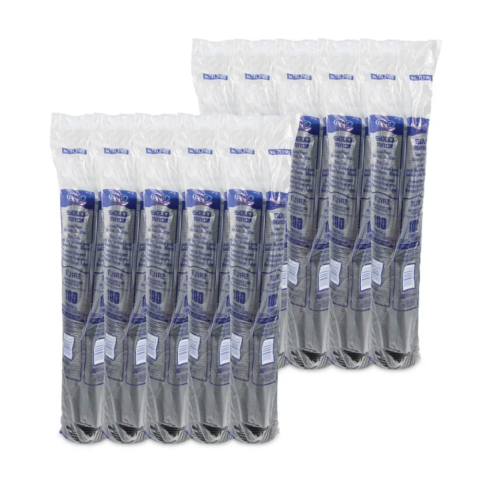 Lid-up SOLO® cups fit tightly with Traveler® drink-thru lids. Secure-fit long-sleeve, dome design features a convenient sipper-slot for on-the-go enjoyment. Unique inner-catch ring keeps the lid from popping-off if the cup should bend or flex.