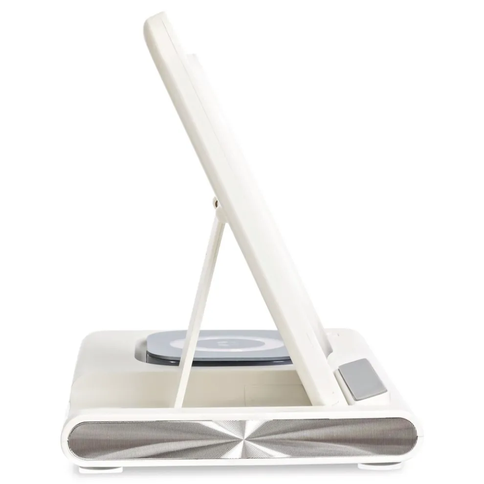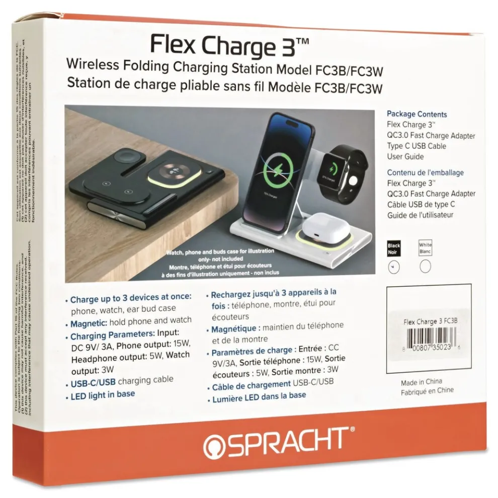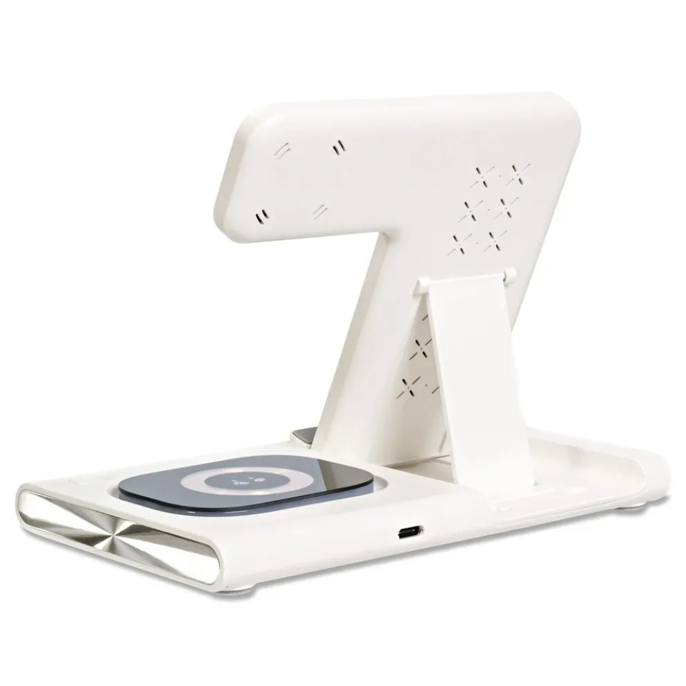 3-in-1 foldable wireless charging station that allows the station to be collapsed flat for easy storage or for travel; when collapsed it will easily fit in your travel backpack, laptop case or purse