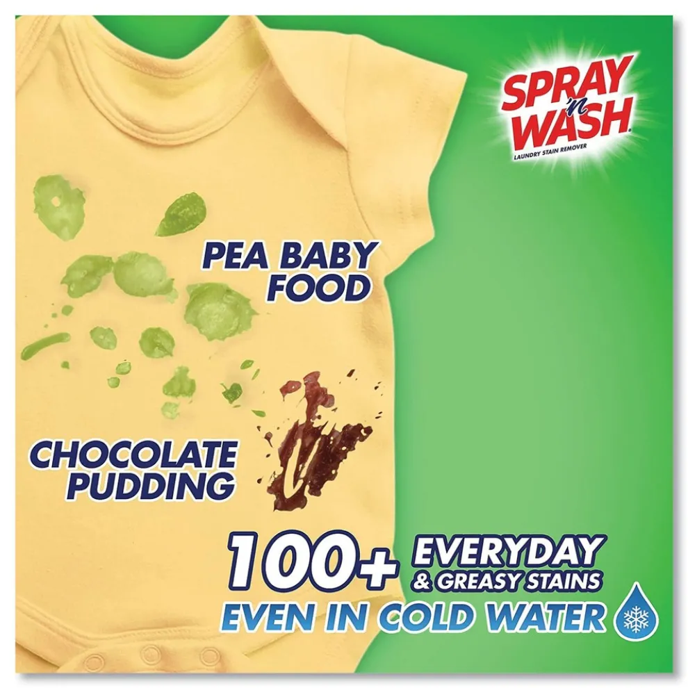 Spray ‘n Wash Pre-Treat Laundry Stain Remover provides first time stain removal. Better on everyday stains vs detergent alone. This stain remover may be used with other laundry additives and works in all temperatures. It is also safe for colorfast washables (excluding washable silk, khaki and fluorescent clothing). If possible, treat and launder while stain is still fresh. Do not let dry on garments or surfaces. With the power of Spray ‘n Wash you can fight everyday stains.