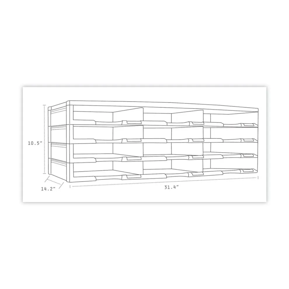 This organizer is made entirely of recycled plastic. Letter size documents or literature can be stored in one of the 12 9″ x 12″ x 2″ compartments. Each compartment features a convenient label holder to easily identify its contents. Holds over 60 lbs. Simple assembly requires no tools. Can be stacked up to 72 compartments high.