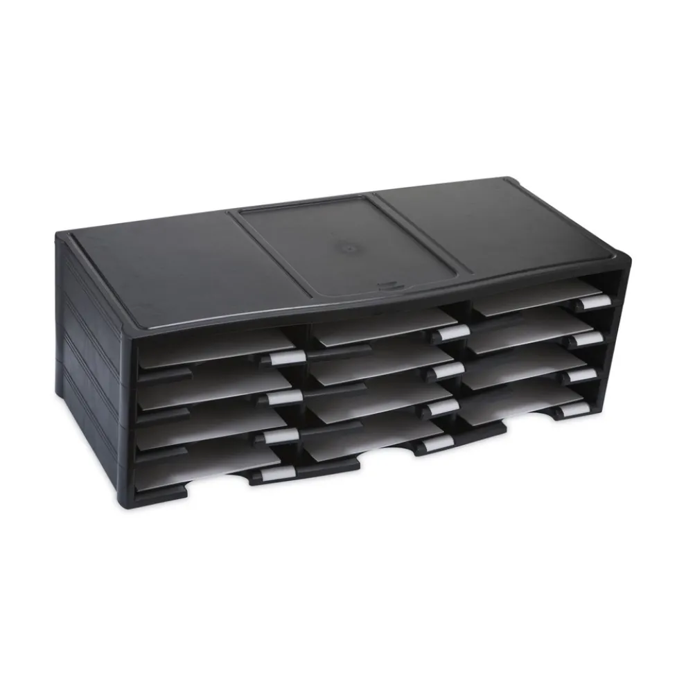 Storex 61602U01C 12 Compartments 10.63 in. x 13.3 in. x 31.4 in. Literature Organizer – Black