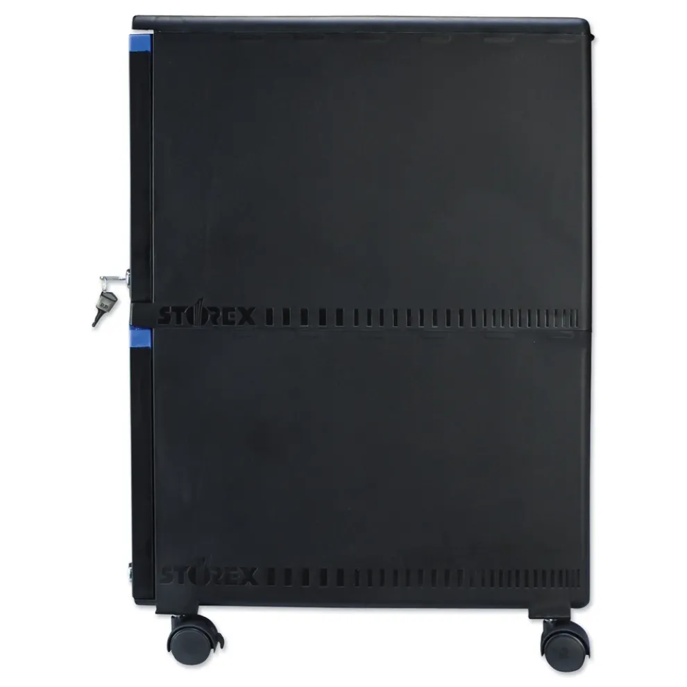 Storex 61314U01C 14.75 in. x 18.25 in. x 26 in. 2-Legal/Letter File Drawer Mobile Filing Cabinet – Black/Blue