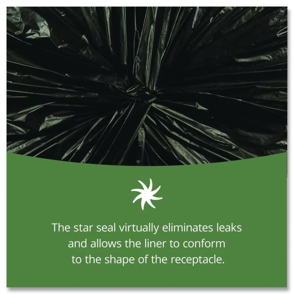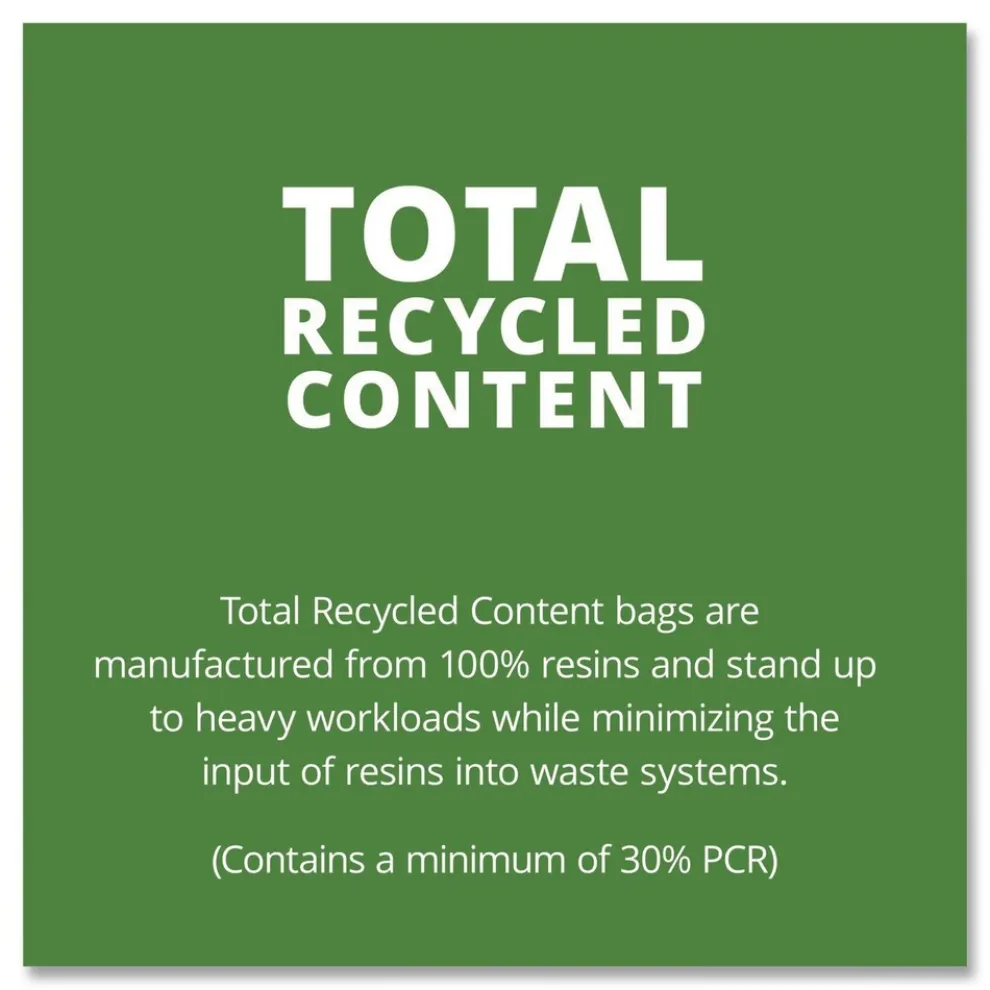 Stout by Envision’s total recycled content can liners are engineered for strength and sustainability! Crafted entirely from recycled linear low density plastic, these can liners offer superior puncture and tear resistance, ensuring your peace of mind with every use. Ideal for home, office and industrial applications. Experience the ultimate combination of durability and sustainability solutions with our premium recycled plastic can liners.