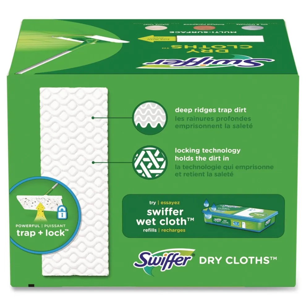 Use Swiffer dry cloth refills on floors and hard-to-reach places above the floor. These Swiffer pad refills leave no residue and are safe for wood floors, ceramic and vinyl tile, electronics, and other hard surfaces. Convenient disposable cloths eliminate the fuss of dust mops. Simply use and throw away.