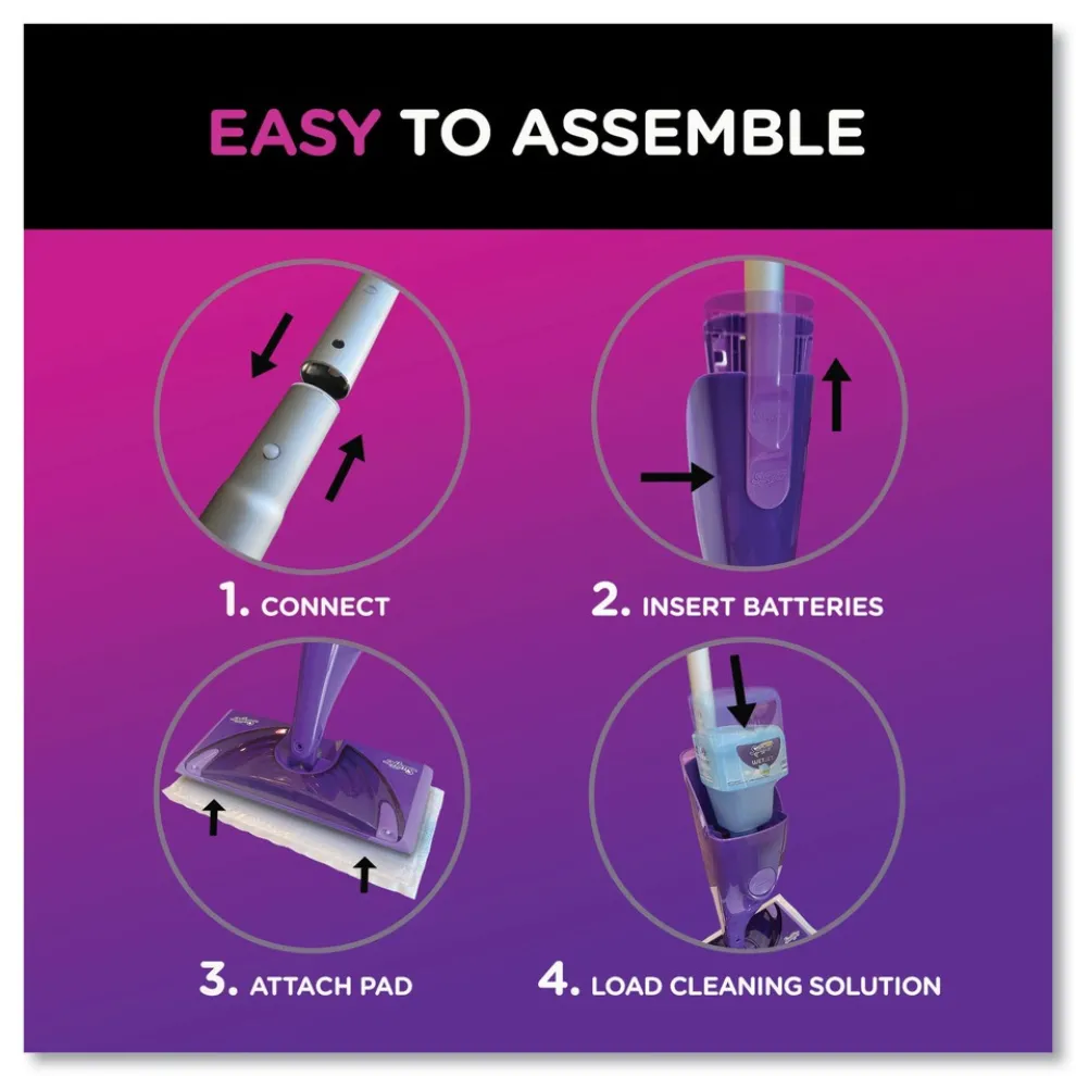 Swiffer 80354301 WetJet 11.3 in. x 5.4 in. Head Mop Starter Kit with 10 Pads and 1 Cleaner – Silver Handle (1/Carton)