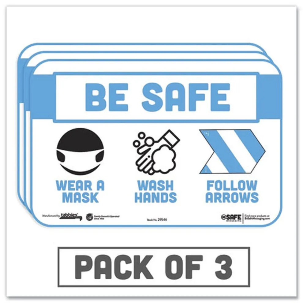 Promote safety at your home, school, office or any public place during COVID-19 with our BeSafe wall safety signs. All wall signage can be reused and repositioned easily on most surfaces including glass, metal and plastics without peeling. Simple to install just peel and stick to any wall. This 9 in. x 6 in. safety sign is sold as a 3 pack.