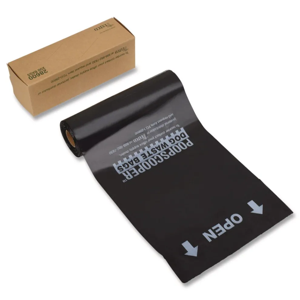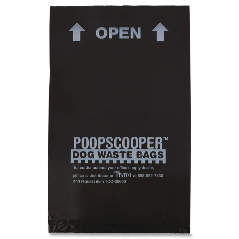 Tatco 28600 Dog Waste Bags Open-Face 0.5 gal 8-in x 13-in Black Perforated Roll 200 Bags/Roll 10 Rolls/Carton