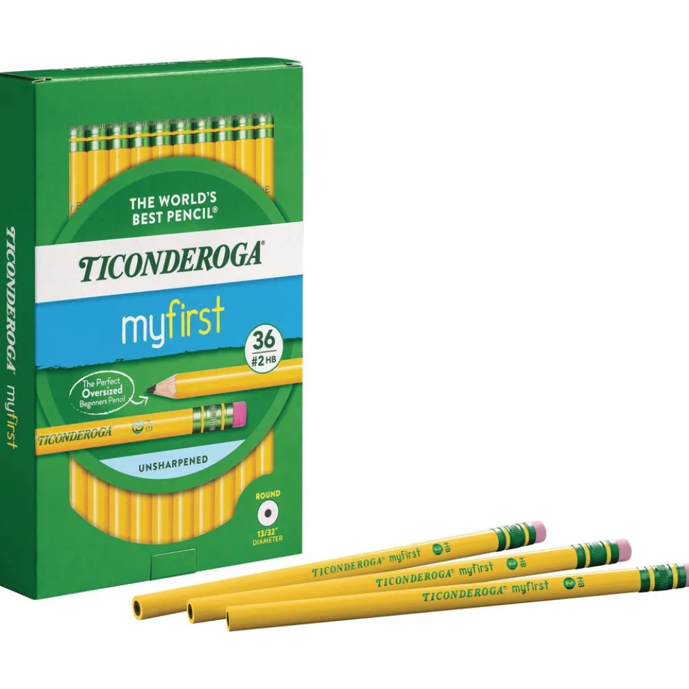 Ticonderoga X33336 3.6 mm HB (#2) My First Woodcase Pencil with Eraser – Black Lead, Yellow Barrel (36/Pack)