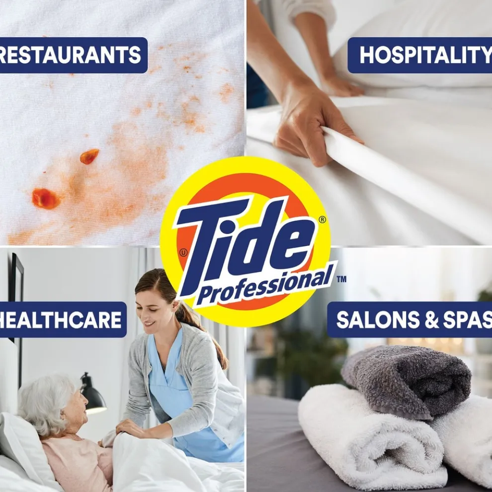 Tide Professional is America’s no. 1 laundry detergent, now for professionals. This commercial laundry detergent is effective on the tough stains that businesses encounter every day, removing them in one wash. Tide Professional Laundry Detergent works across different types of businesses including foodservice, hospitality, healthcare and more, and in both commercial and residential machines.