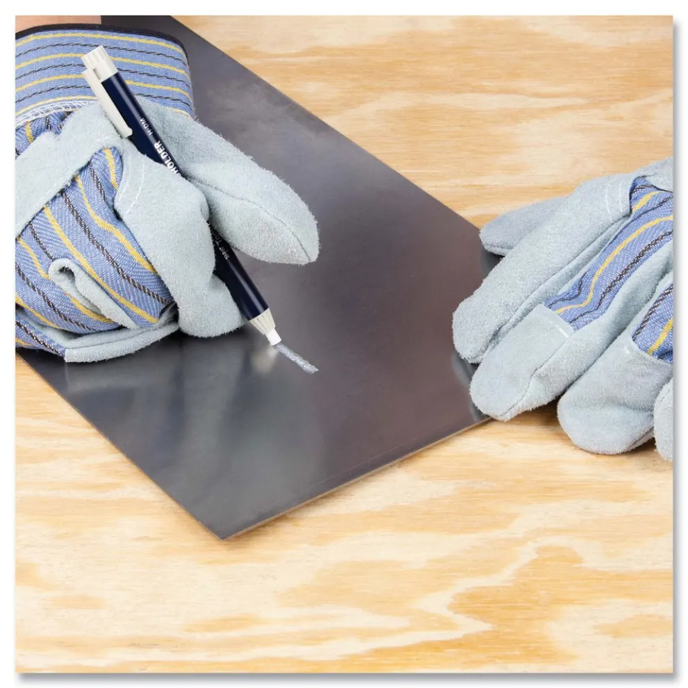 Versatile wax-based marking pencil for smooth, legible writing on a variety of surfaces. Use on both porous and nonporous surfaces, such as ceramics, stone, wood, glass, rubber, plastic, textiles, metal, coated paper, cardboard and more. Water-resistant and works great on both dark and transparent surfaces. Easily erase from nonporous surfaces by wiping with a damp cloth. Refillable pen-style body features rotate-to-advance system and durable clip, making it easy to use and store. No sharpening needed and pen-style design ensures entire marking pencil is used without any waste. Perfect for craftsmen and professional use in industrial environments. Economical to refill and reuse existing applicator.