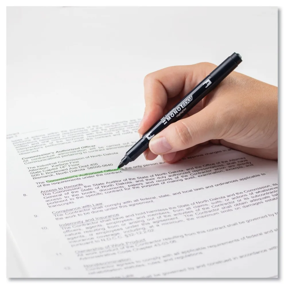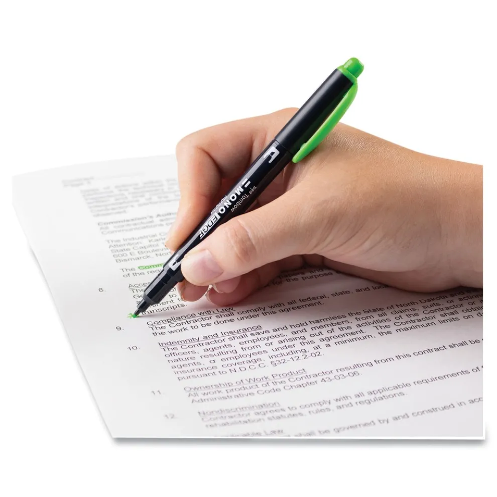 Tombow Mono 56415 Chisel/Bullet Tip Edge Highlighters – Yellow Green Barrel/Yellow Green Ink (10/Box)