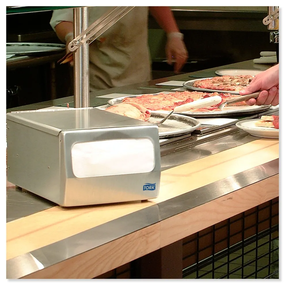 This Tork Universal Dispenser Napkins embossing and semi-crepe texture gives a quality feel. Identical folded size to full size dispenser napkins provides an open size of 5″ shorter making it a big cost savings. Ideal for self-service establishments that care about cost in use.