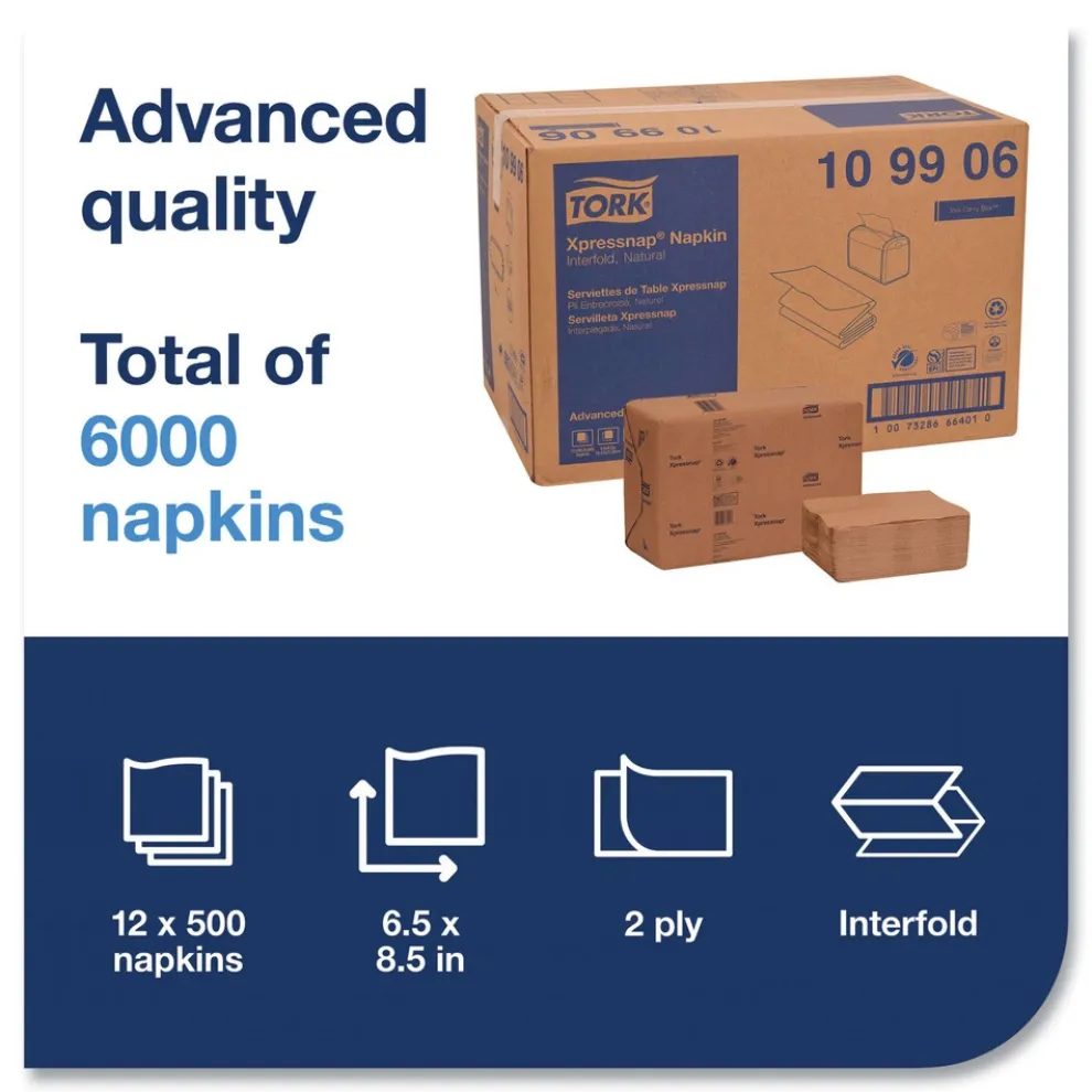Tork 109906 2-Ply 6.5 in. x 8.5 in. Xpressnap Interfold Dispenser Napkins – Natural (12/Carton)