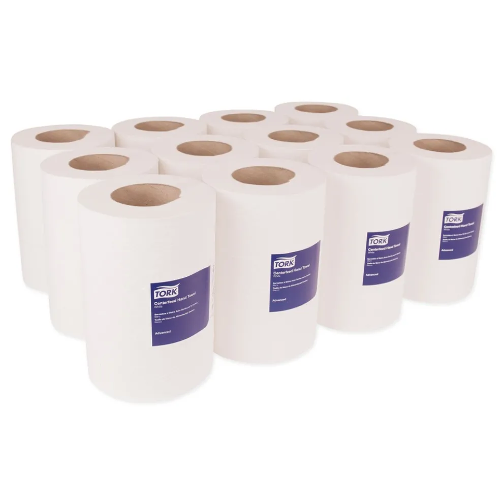 Tork® Advanced Soft Mini Centerfeed Towels offer one-at-a-time service and reduce waste. These high capacity towels reduce labor and refills. High absorbency, means less towels used. Touch only the dispensing towel, which reduces cross contamination. Available in an Easy Handling® carry box.