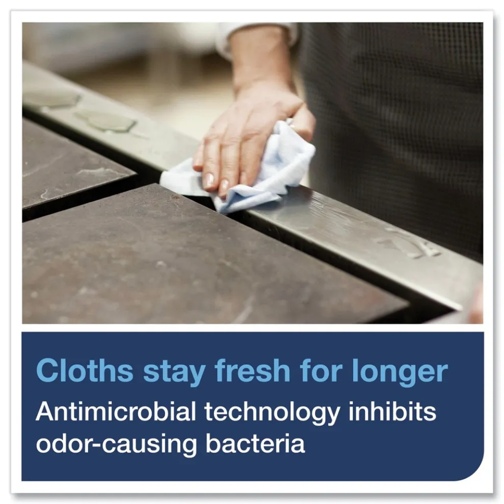 The Tork Foodservice Cleaning Towel is an excellent towel for use with quat sanitizers when the primary task is to deliver sanitizer to hard surfaces. Color-coded—designating area of use by color is a foodservice best practice that eliminates the potential for cross-contamination. Easy to rinse, dries quickly and is low linting. Good absorption will allow cloth to pick up dirt and mop up spills effectively. The product comes in a sturdy, easy to store self-dispensing corrugated box. Antimicrobial cloths inhibit growth of odor-causing microorganisms on the product surface.