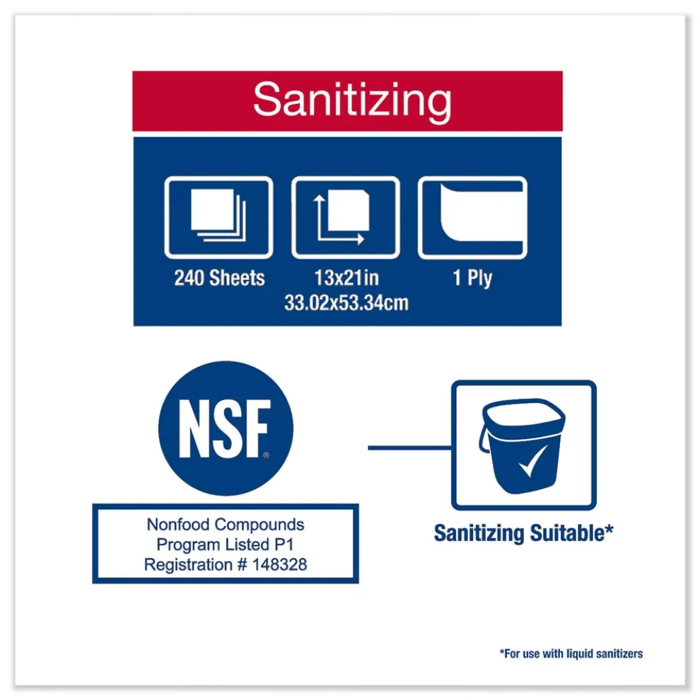The Tork Foodservice Cleaning Towel is an excellent towel for use with quat sanitizers when the primary task is to deliver sanitizer to hard surfaces. Color-coded—designating area of use by color is a foodservice best practice that eliminates the potential for cross-contamination. Easy to rinse, dries quickly and is low linting. Good absorption will allow cloth to pick up dirt and mop up spills effectively. The product comes in a sturdy, easy to store self-dispensing corrugated box. Antimicrobial cloths inhibit growth of odor-causing microorganisms on the product surface.