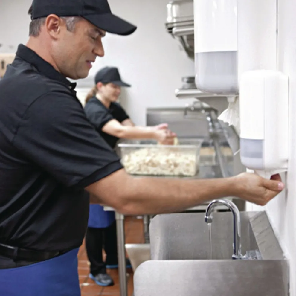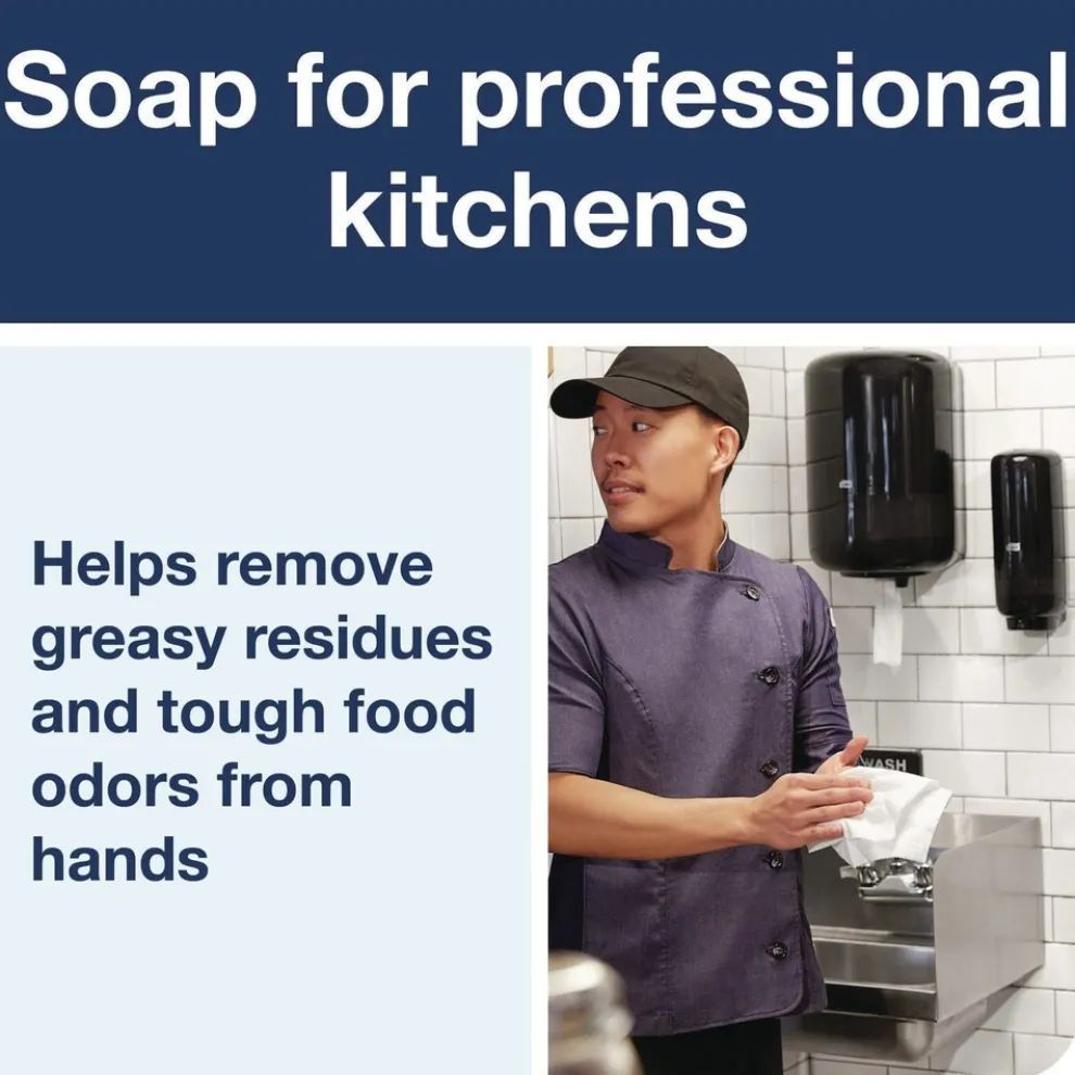 This kitchen hand soap helps remove food fats and tough odors from hands. Specially designed for professional chefs and the food industry, this non-perfumed liquid soap is suitable for frequent use and is gentle to the skin. Tork Odor-Control soap is compatible with Tork S4 skincare dispensers. The sealed bottle helps to promote good hygiene and reduce the risk of cross-contamination. The bottle also collapses as the contents are used, helping to reduce product waste.