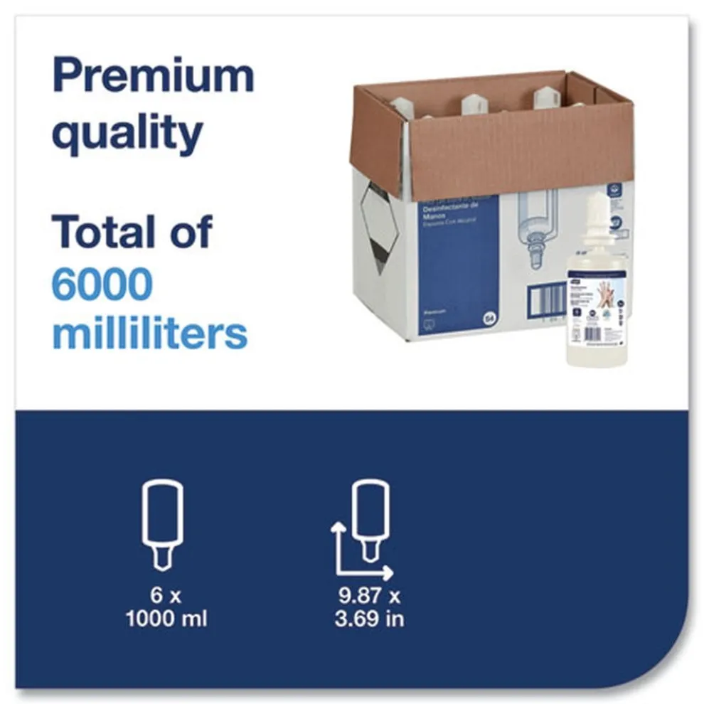 Tork® Premium Alcohol Gel Hand Sanitizer provides for even more efficient hand hygiene, sanitizing and disinfecting hands quickly without water. With 72% alcohol, it is perfect for critical needs healthcare environments, food processing and food preparation areas. Use with Tork Skincare dispensers for soap and hand sanitizers. Easy-to-use design promotes good hand hygiene for all visitors.