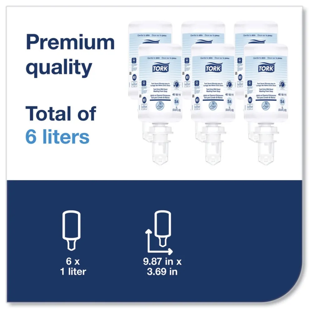Tork® Extra Mild Foam Soap is gentle to skin with no fragrance or dyes added. Featuring mild and moisturizing ingredients, this soap has been dermatologically tested and it is suitable for frequent use. Lathers well and rinses easily. Easy to use and provides good hand hygiene to all users.