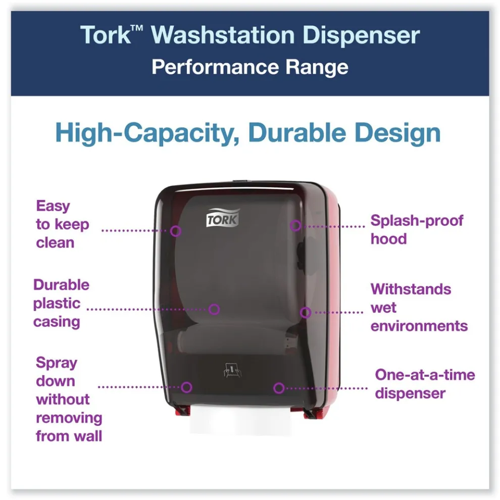 Tork 651228 12.56 in. x 10.57 in. x 18.09 in. Washstation Dispenser Red/Smoke (1/Carton)