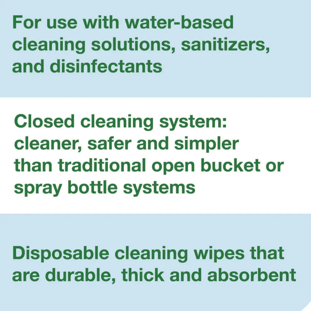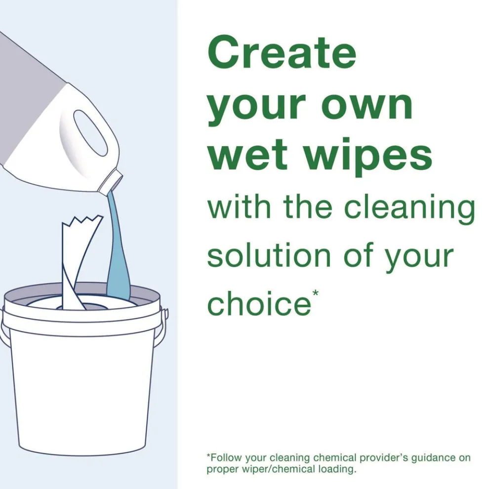 Make your own wet wipes with these Chem-Ready buckets. Simply place the roll of dry wipes into the compatible bucket and add your preferred water-based cleaning solution, sanitizer, or disinfectant cleaning chemical. The buckets are high capacity and portable, so staff can carry wipes wherever they are needed. Chem-Ready provides closed system cleaning that’s more hygienic, safer and simpler than traditional open bucket or spray bottle systems. Plus, the resealable lid prevents spills and protects wipes from drying out. Compatible with Everwipe by Tork W11 refills.