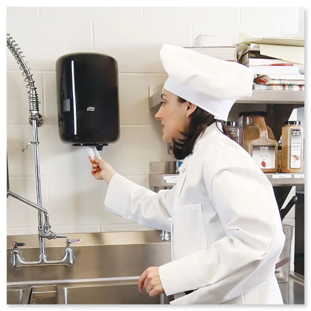 Tork Universal Centerfeed Hand Towels offer one-at-a-time service while reducing waste. Ideal for many environments such as workshops and kitchens. Hygienic–touch only the dispensing paper towel and reduce cross contamination.
