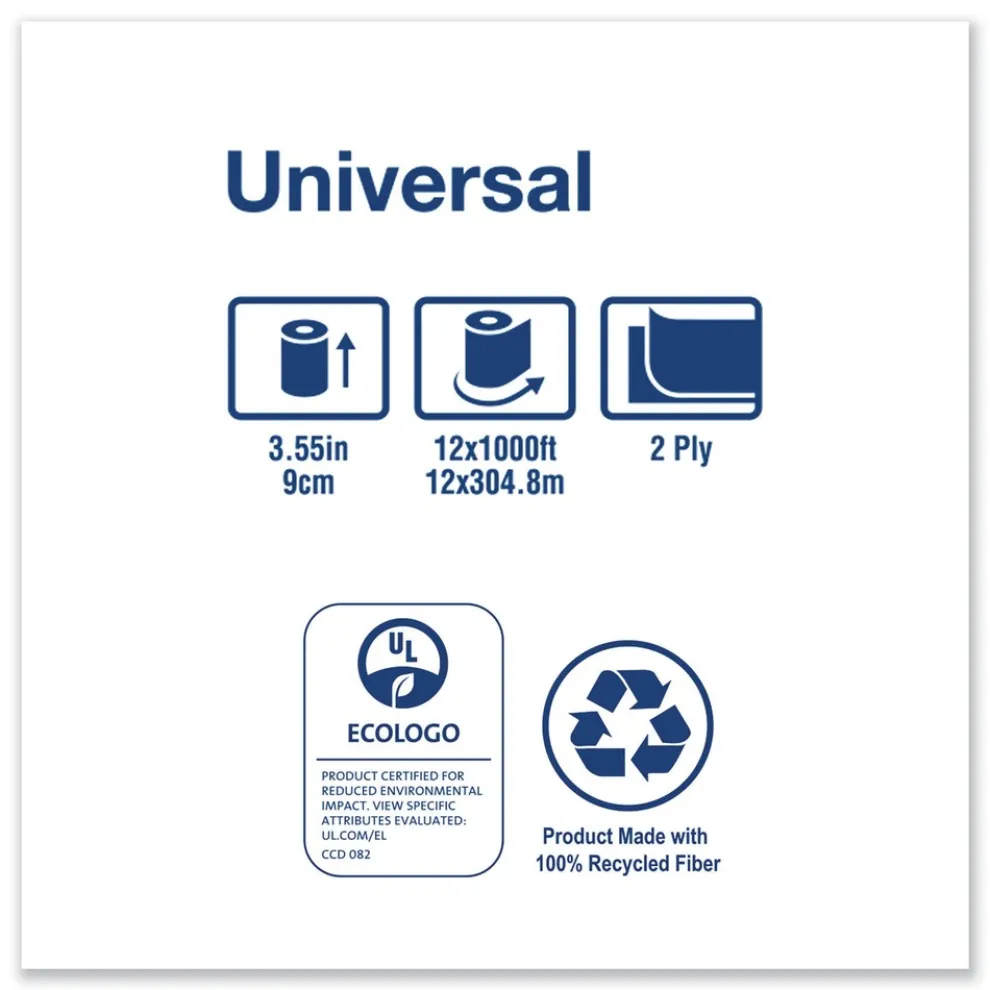 (12/Carton) Universal 3.48 in. x 1,000 ft. 2-Ply Septic Safe Jumbo Bath Tissue – White – TJ0922A