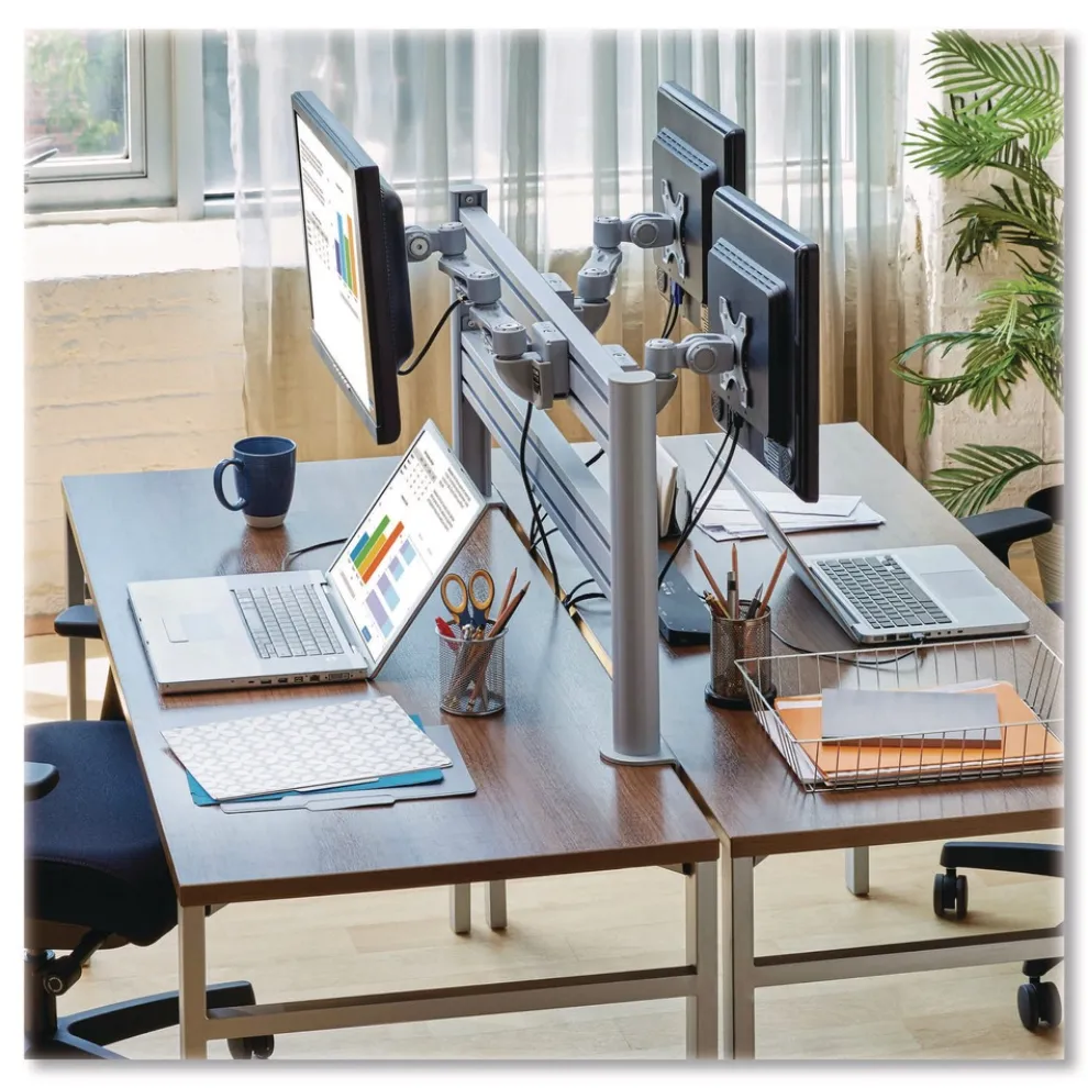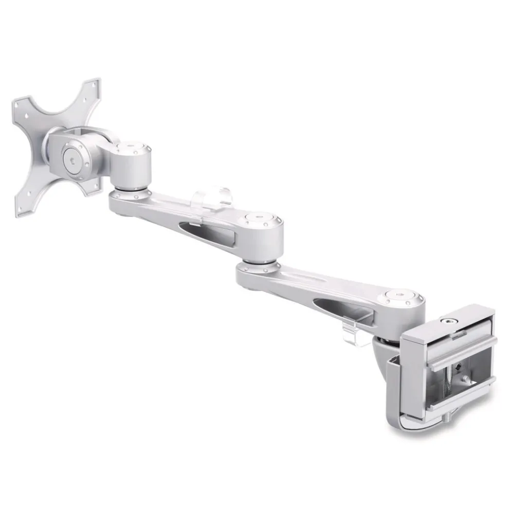 This VESA-compliant TV wall mount lets you place your digital signage, monitor or television where everyone can see it best. It’s ideal for office, hybrid and work-from-home environments, including office cubicles, art tables and lab workbenches. The stylish aluminum mount fits most flat-panel displays from 13″ to 32″ and supports up to 22 lbs. The articulating arm adjusts independently to optimize viewing angles, minimize glare and improve ergonomics. To minimize screen glare, reduce eye fatigue and increase viewing comfort, the mount features -15 to +15 tilt, -90 to +90 swivel and full 360 rotation for positioning your screen just right. The arm extends up to 16 ” from the slat. For hassle-free display compatibility, this slat wall mount supports the following VESA mounting hole patterns: 75 x 75 and 100 x 100. Requires slat wall system for installation and easily attaches to the Slat Rail with Posts (DMSWKITTAA) or the Slat Rail (DMSWSLATTAA), both sold separately. Your monitor is elevated above the desktop, which frees up precious workspace. You can also slide the monitor along grooves and then adjust the viewing angle for optimal ergonomics. Grooves on both sides of the slat rail accommodate independently adjustable monitor setups when desks are pushed together back-to-back are also available. Compliant with the Federal Trade Agreements Act (TAA), which makes it eligible for GSA (General Services Administration) Schedule and other federal procurement contracts.