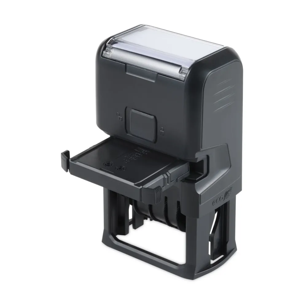 Versatile dater offers five options: the date alone or with one of four interchangeable key phrases to surround the date. Four band date: months, days and 10 years for long service. Date band cover ensures fingers remain clean. Includes replaceable stamp pad that delivers up to 10000 impressions. Sturdy plastic frame is perfect for moderate use.