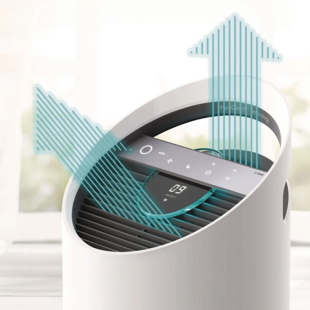 360 degree filtration draws in air from all directions, collecting pollutants from around the room that may affect allergy and symptoms.