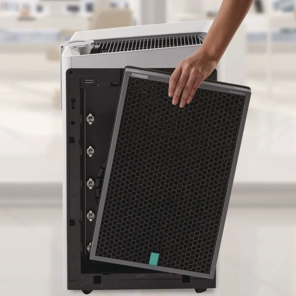 The Activated Carbon Filter captures volatile organic compounds (VOCs).