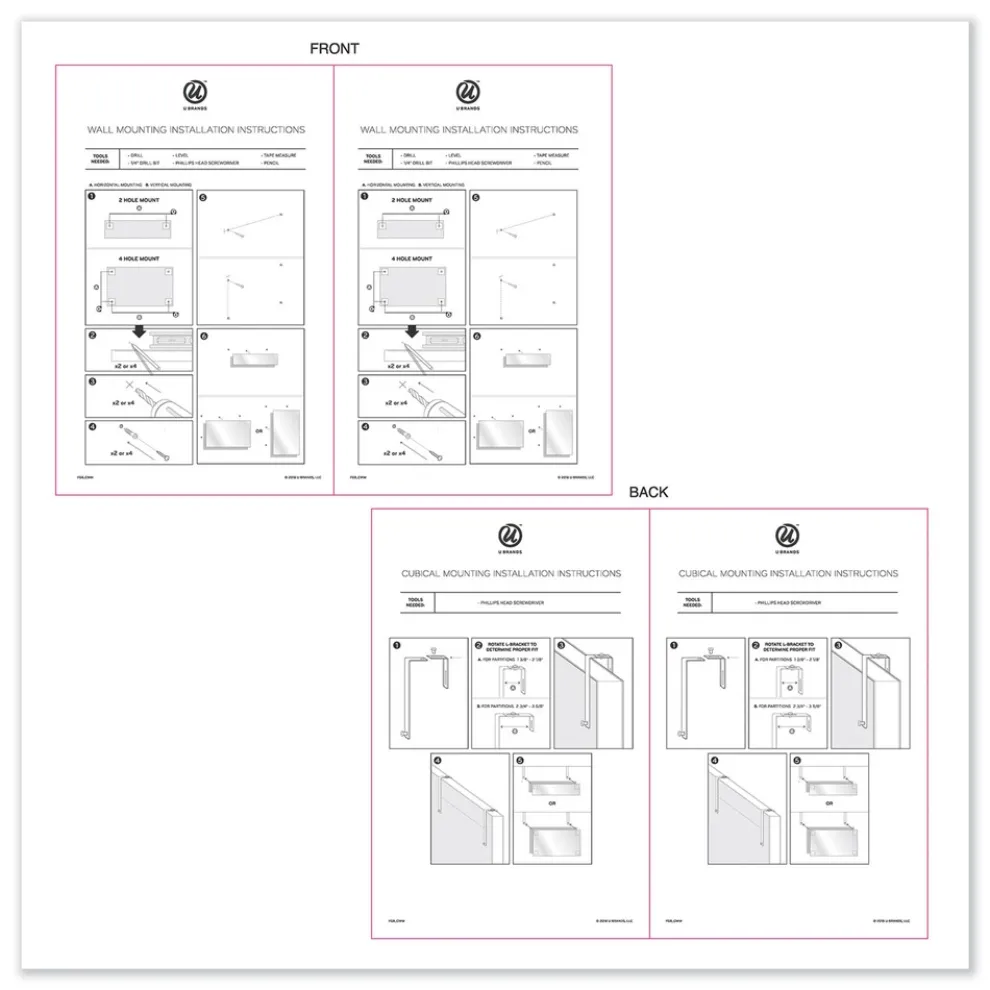 White frosted glass dry erase board is a perfect and functional solution for your work cubicle. Use the included adjustable cubicle hooks to cleanly hang the glass board over your cubicle wall. Clean, contemporary and frameless product design lines will add a touch of subtle style to your work-space. The board’s premium ultimate glass writing surface will never stain or ghost. All ink erases easily with a simple eraser and the glass surface continuously outperforms all traditional melamine or painted steel dry erase writing surfaces. Occasionally, use any dry erase board spray or wet dry erase board wipes after continuous use to clean the writing surface. Although all dry erase markers work well with this board, the U Brands dry erase markers provide the ultimate writing and eras-ability experience.
