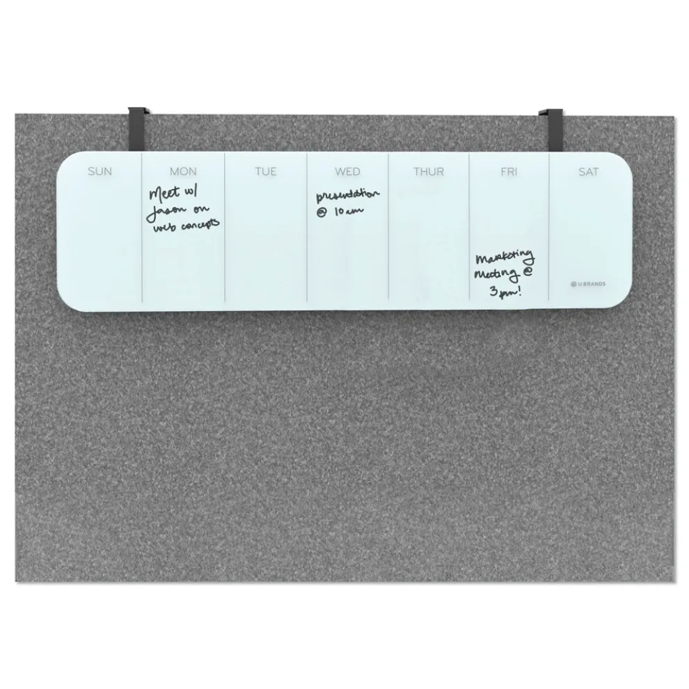 U Brands 3688U00-01 20 x 5.5 Undated One-Week Cubicle Glass Dry Erase Board – White Surface