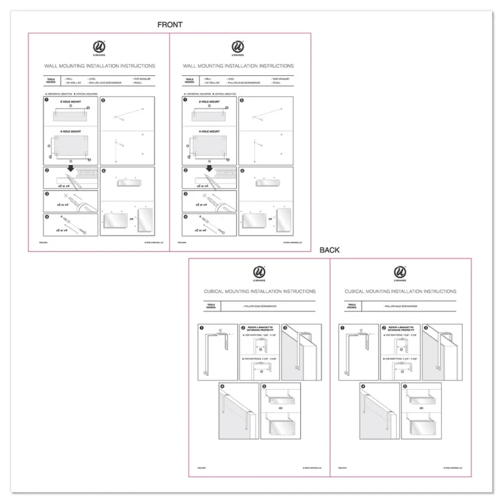 White frosted glass dry erase board is a perfect and functional solution for your work cubicle. Use the included adjustable cubicle hooks to cleanly hang the glass board over your cubicle wall. Clean, contemporary and frameless product design lines will add a touch of subtle style to your work-space. The board’s premium ultimate glass writing surface will never stain or ghost. All ink erases easily with a simple eraser and the glass surface continuously outperforms all traditional melamine or painted steel dry erase writing surfaces. Occasionally, use any dry erase board spray or wet dry erase board wipes after continuous use to clean the writing surface. Although all dry erase markers work well with this board, the U Brands dry erase markers provide the ultimate writing and eras-ability experience.