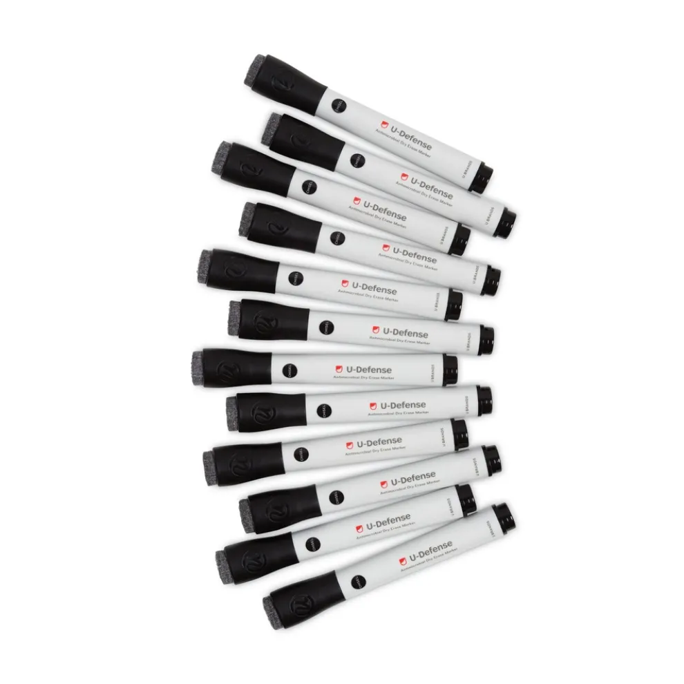 For a cleaner office, classroom, or home experience, U-Defense Antimicrobial Dry-Erase Markers By U Brands provide maximum protection. A silver-based antimicrobial agent is integrated into the marker barrel and cap during manufacturing, and works to prevent the growth of microorganisms like bacteria, mildew, and mold. Featuring everything you love about U Brands Dry-Erase markers – bold ink laydown, contoured caps with built-in erasers. You can now feel better about sharing with classmates or coworkers.