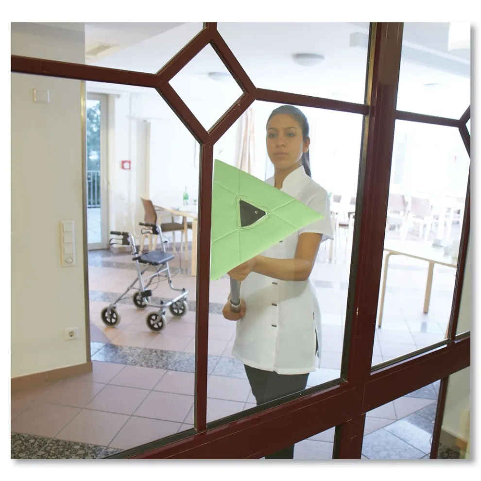 This pad’s microfiber material is tough on dirt and gentle on glass. Machine washable, it will maintain its integrity through up to 200 wash cycles, helping to cut down on the cost of paper product waste. With optimal cleaning performance and a reusable design, the Stingray cleaning pad helps you save both time and money while increasing productivity.