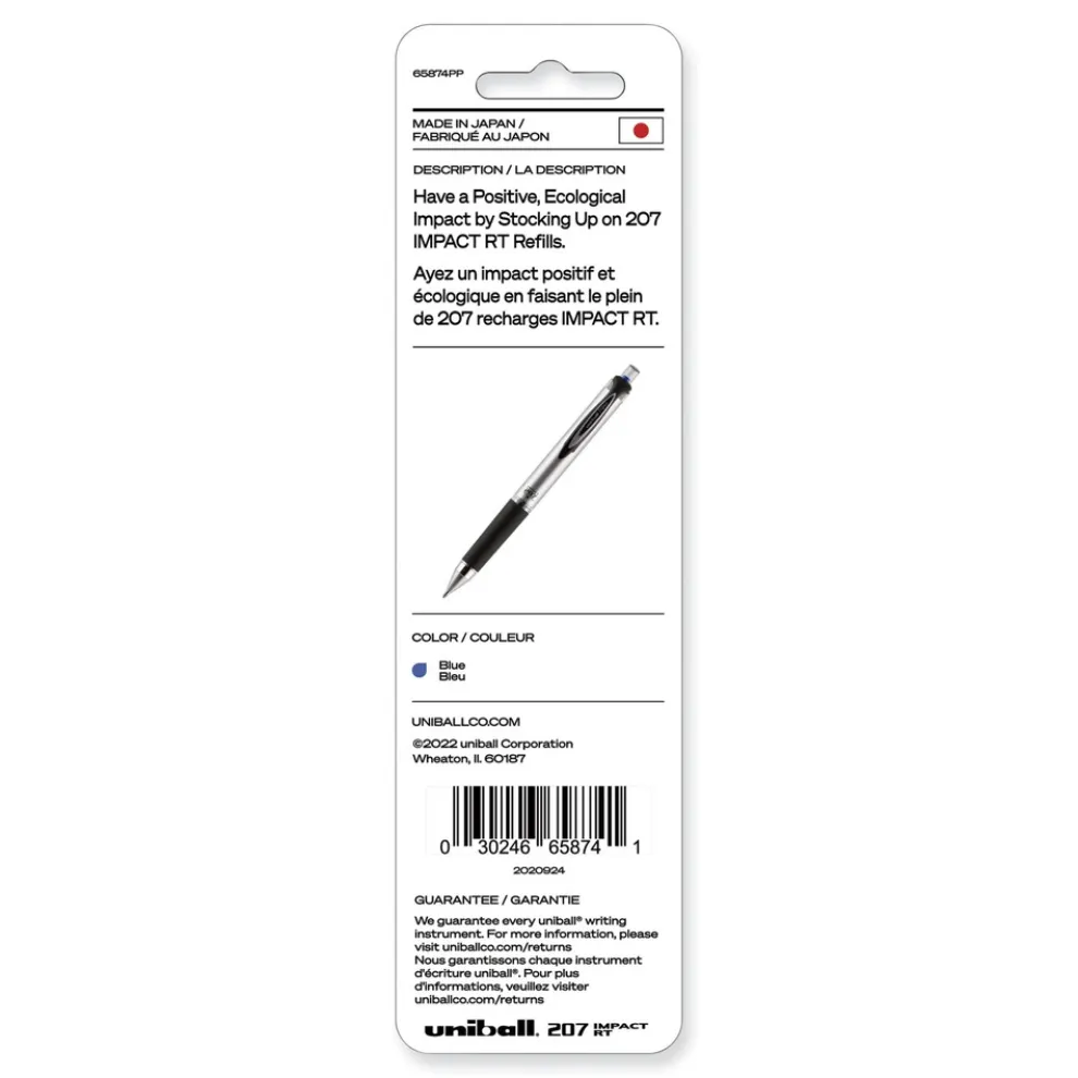 uni-ball 65874PP 207 Impact RT Gel Bold 1 mm Conical Tip Pen Refills – Blue Ink (2/Pack)